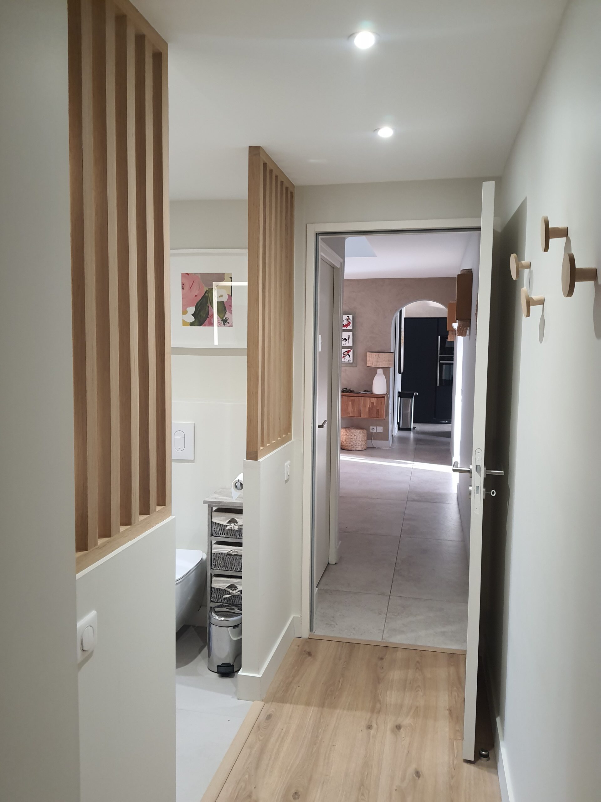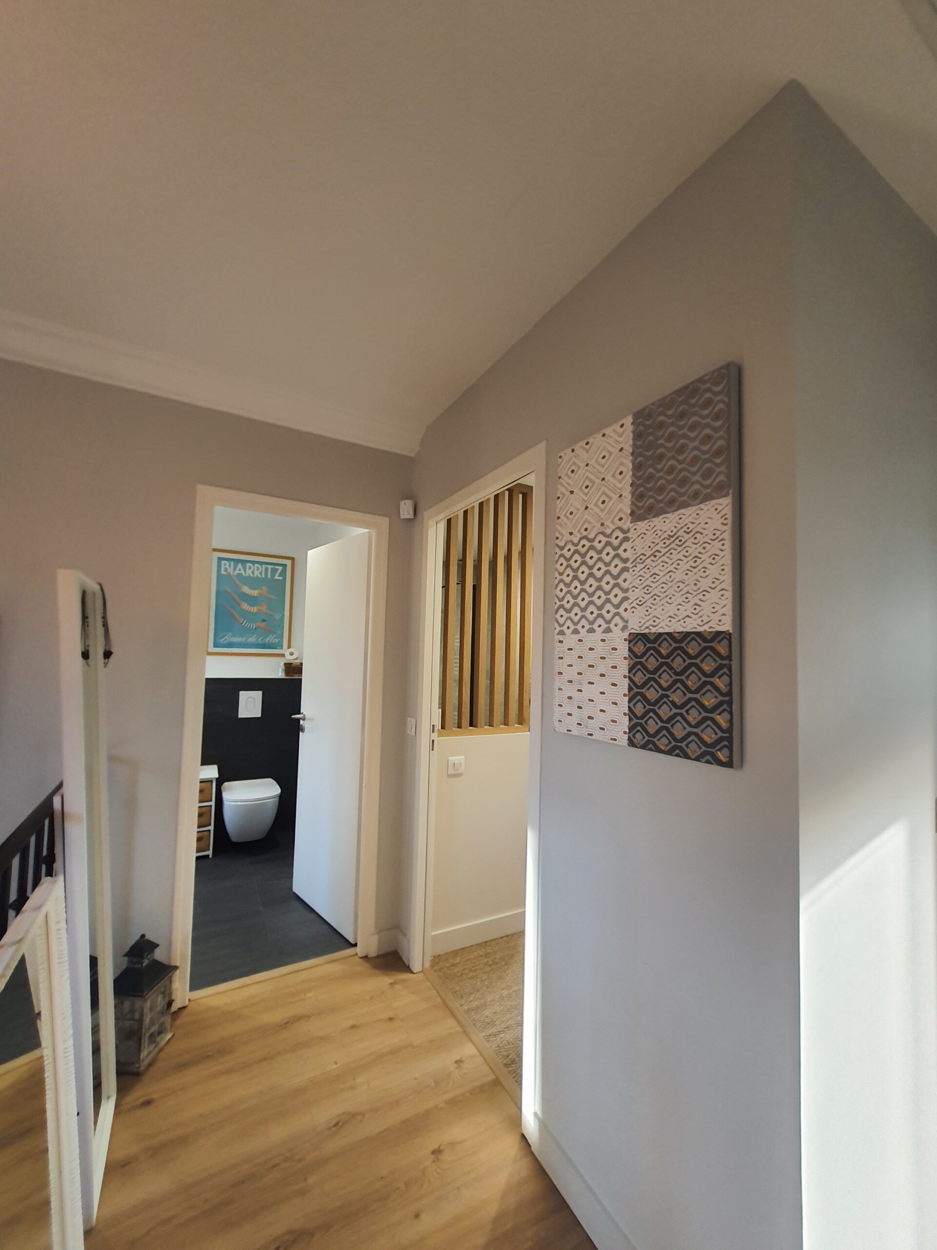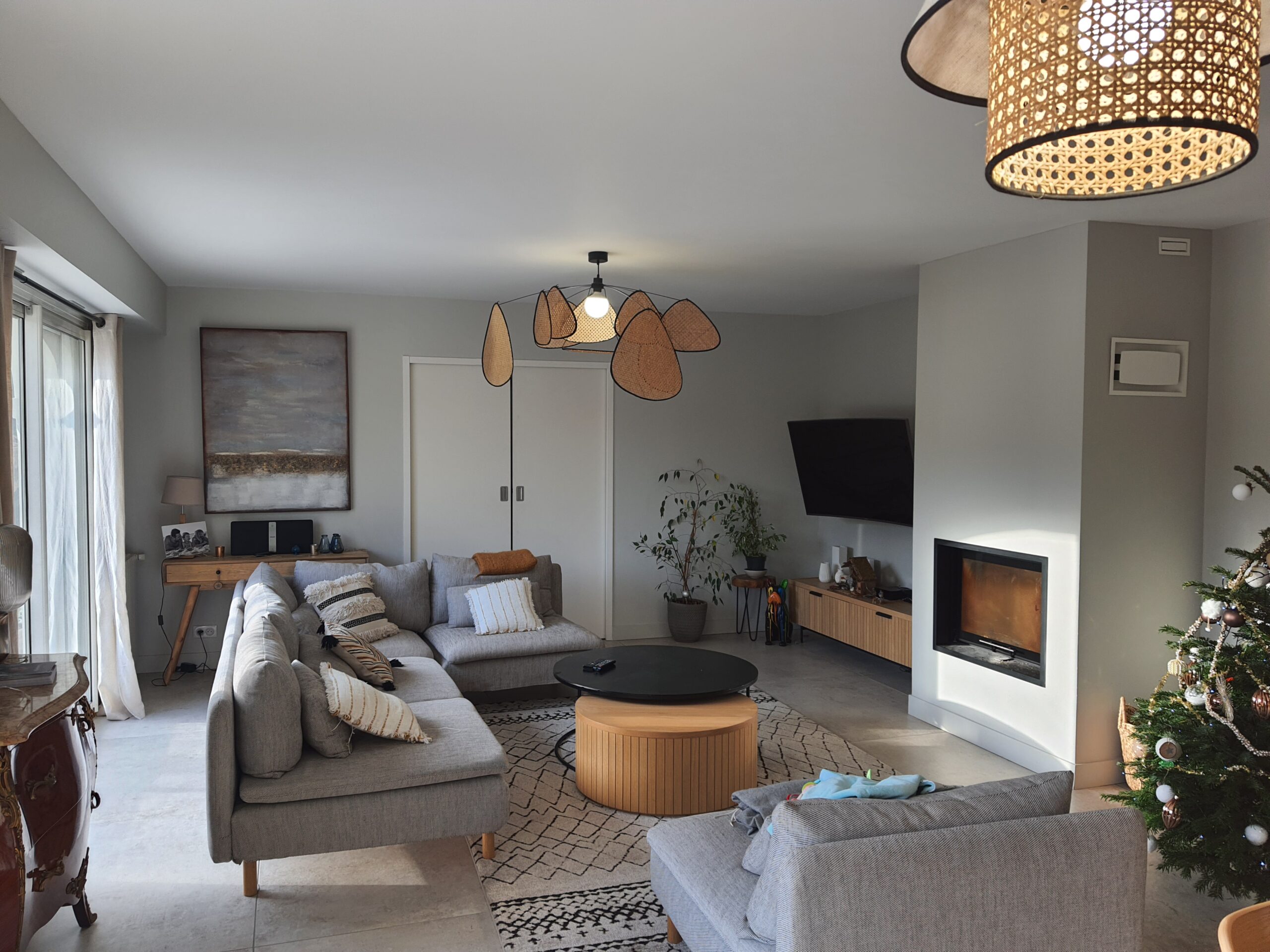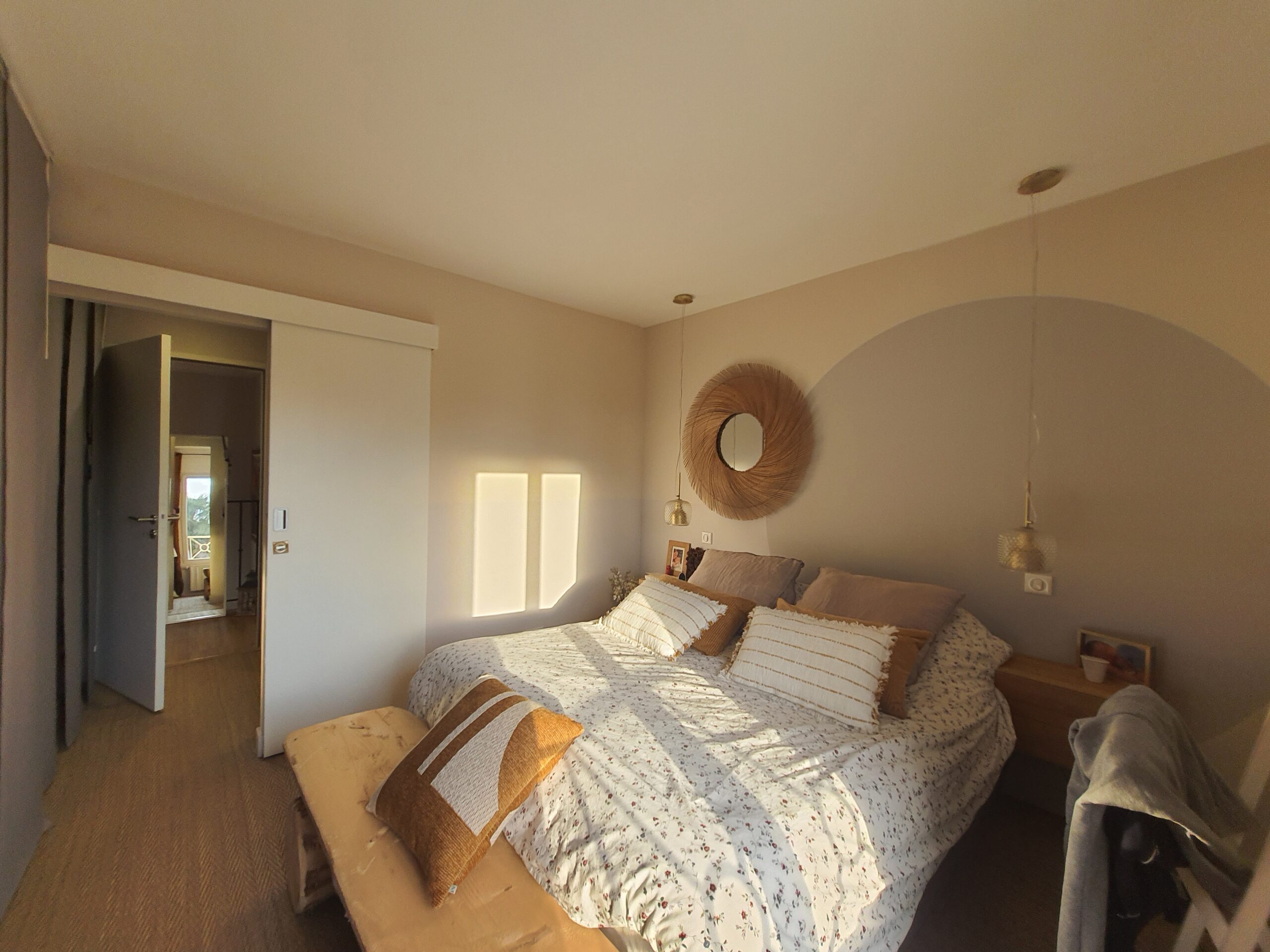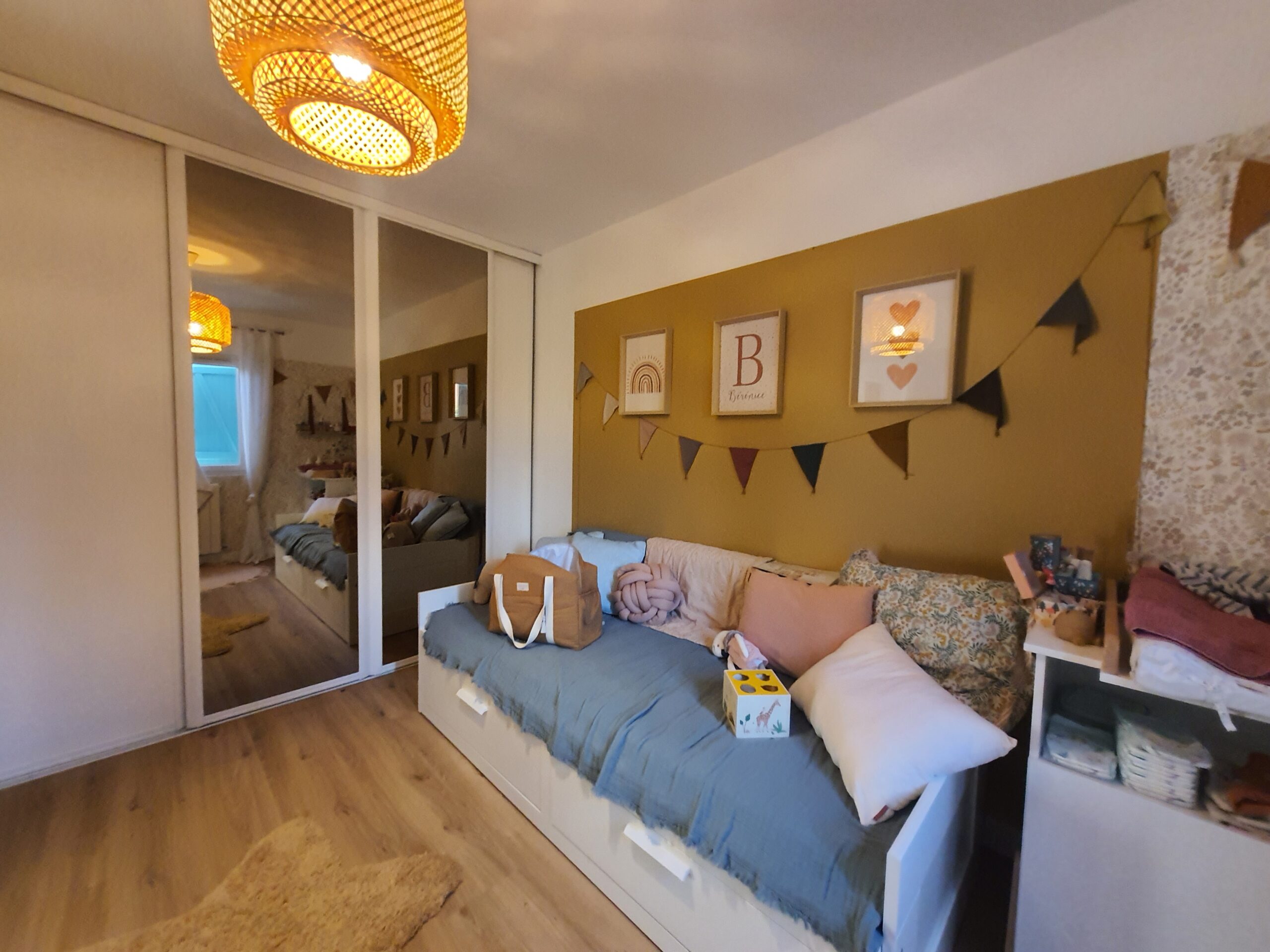 À l’intérieur, chaque espace a été repensé pour créer un intérieur cohérent, contemporain et chaleureux. Les pièces de vie adoptent une palette de tons naturels – beige, blanc cassé, vert sauge – avec des matières douces et des luminaires soigneusement choisis qui apportent caractère et confort. La chambre enfant, espiègle et poétique avec sa tête de lit en forme de maison, illustre la capacité d’ADK Architecture à concevoir des espaces adaptés à chaque membre de la famille. La cave à vin sur mesure, pensée jusque dans ses moindres détails, répond quant à elle aux exigences d’un amateur éclairé alliant fonctionnalité et esthétique.