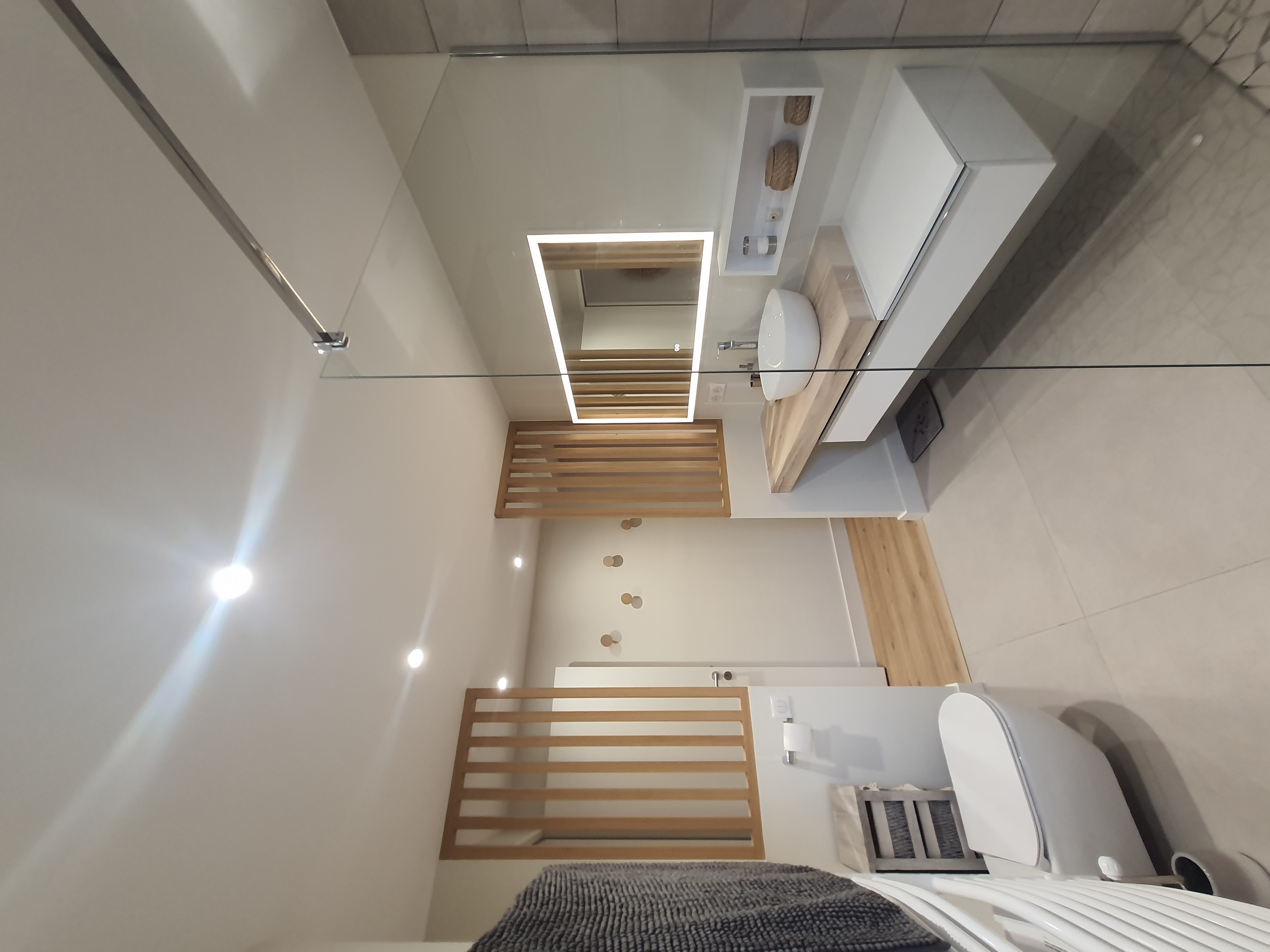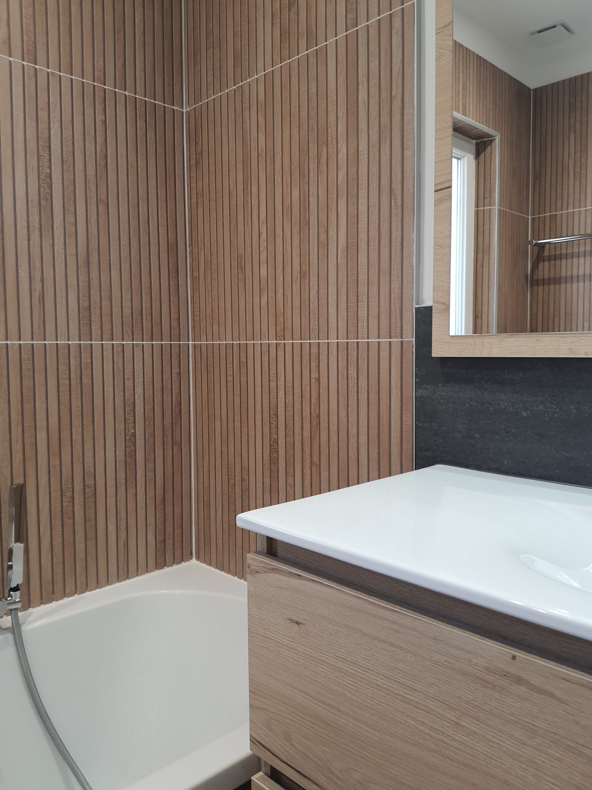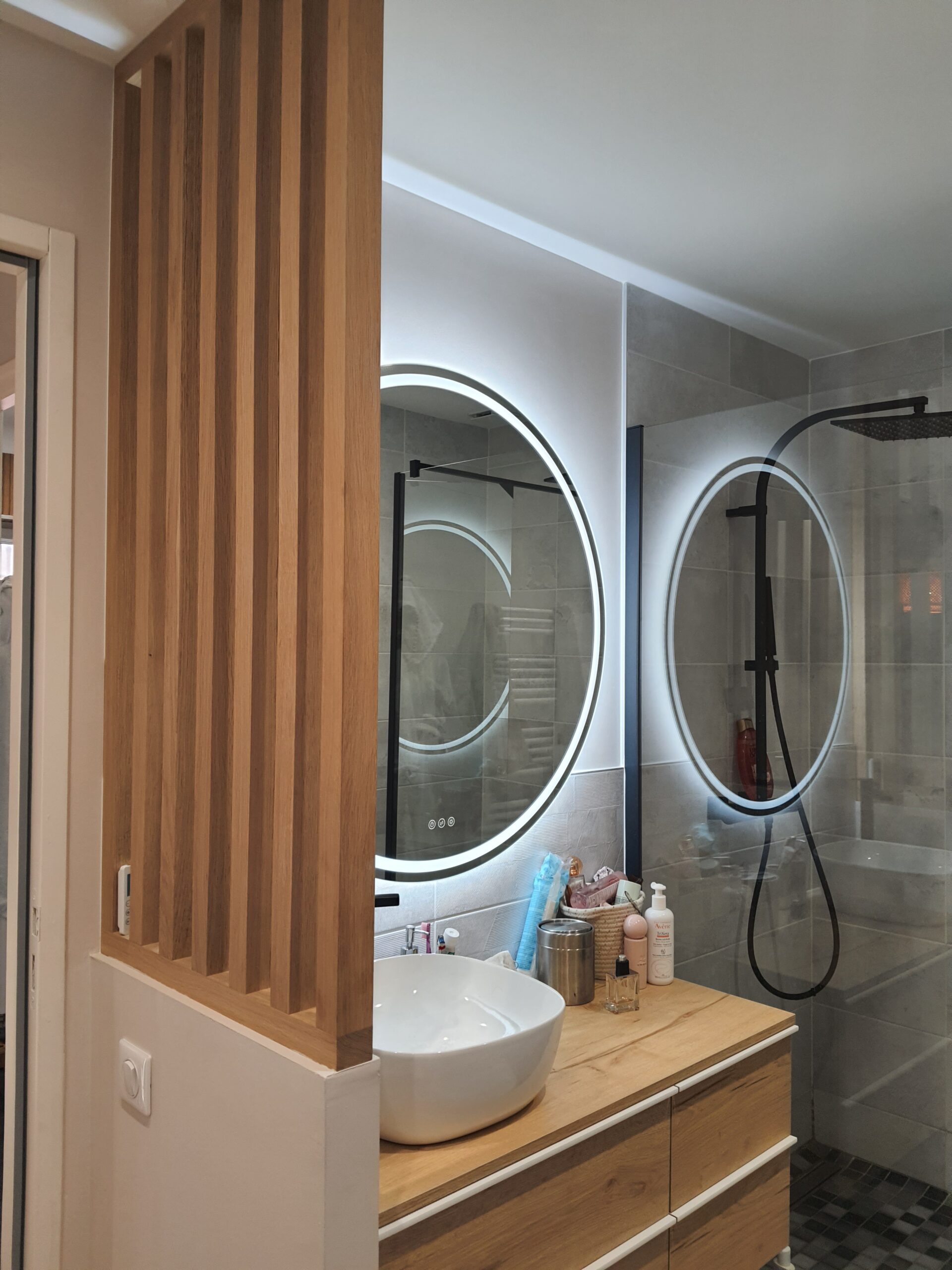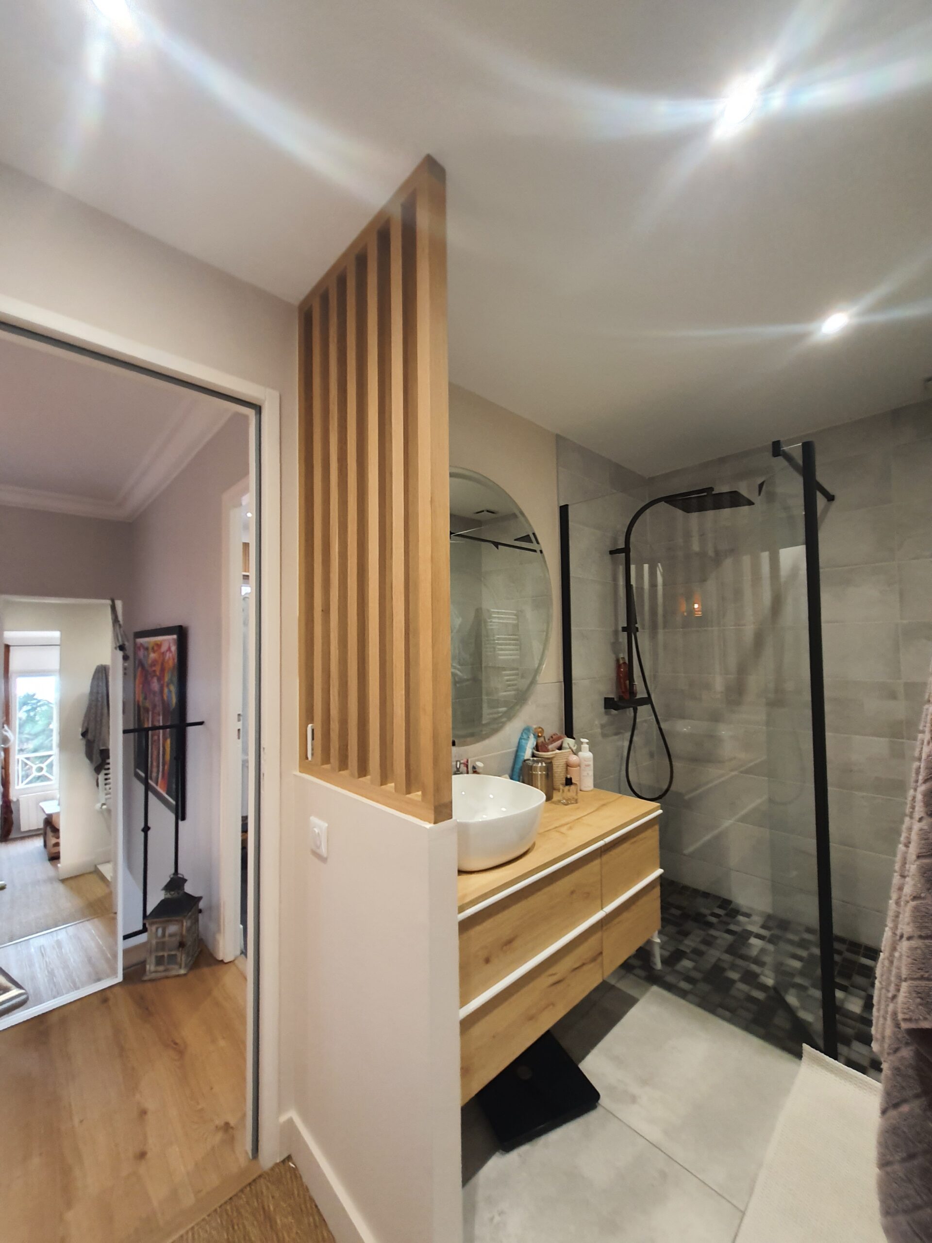 À l’intérieur, chaque espace a été repensé pour créer un intérieur cohérent, contemporain et chaleureux. Les pièces de vie adoptent une palette de tons naturels – beige, blanc cassé, vert sauge – avec des matières douces et des luminaires soigneusement choisis qui apportent caractère et confort. La chambre enfant, espiègle et poétique avec sa tête de lit en forme de maison, illustre la capacité d’ADK Architecture à concevoir des espaces adaptés à chaque membre de la famille. La cave à vin sur mesure, pensée jusque dans ses moindres détails, répond quant à elle aux exigences d’un amateur éclairé alliant fonctionnalité et esthétique.